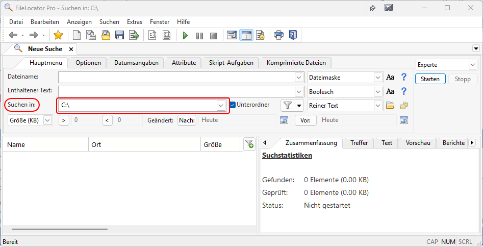 in FileLocator ins Feld "Suchen in:" eingetragen wird.